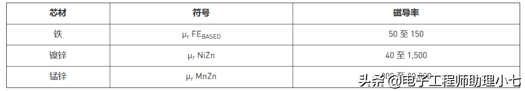 通常情况下,铁磁材料已可以满足磁芯电感所需的磁特性。根据磁芯材料的不同,电感的相对磁导率在 50 至 20000 之间。