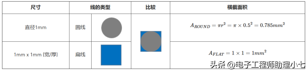 下图所示为圆线与扁线的横截面积比较。