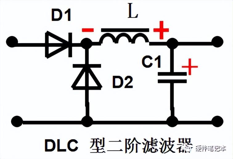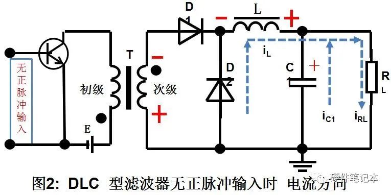 b.当输入正脉冲消失后,这时变压器次级绕组产生的自感电压为上负下正,所以整流管D1截止,滤波器没有输入电压,负载RL的电流供给由两部分组成,一部分由电感中储存的磁能转换为电能,电流方向与原来的电流方向一致,并通过续流二极管D2构成回路电流iL,另一路是C1放电提供的电流为-ic1。2. DLC型滤波器,输出的直流电压就是它输入的矩形波电压的平均值。3. DLC型滤波器常用在脉宽式开关稳压电源,DLC的输出端,对地需要并联一个电阻,习惯上叫做”释放电阻”,一般在释放电阻中有30-50mA电流就可以。