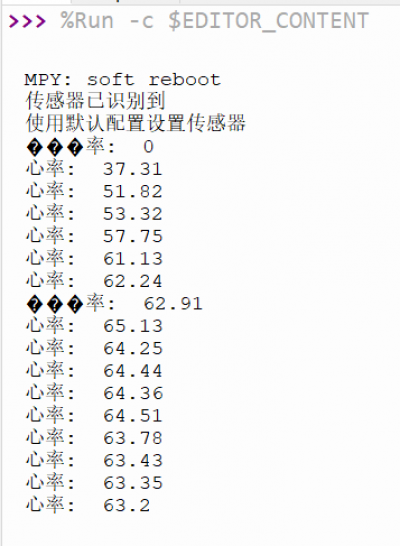 from machine import SoftI2C, Pin, Timerfrom utime import ticks_diff, ticks_usfrom max30102 import MAX30102, MAX30105_PULSE_AMP_MEDIUMBEATS = 0 # 存储心率FINGER_FLAG = False # 默认表示未检测到手指def display_info(t): # 如果没有检测到手指,那么就不显示 if FINGER_FLAG is False: return print('心率: ', BEATS)def main(): global BEATS, FINGER_FLAG # 如果需要对全局变量修改,则需要global声明 # 创建I2C对象(检测MAX30102) i2c = SoftI2C(sda=Pin(16), scl=Pin(17), freq=400000) # Fast: 400kHz, slow: 100kHz # 创建传感器对象 sensor = MAX30102(i2c=i2c) # 检测是否有传感器 if sensor.i2c_address not in i2c.scan(): print("没有找到传感器") return elif not (sensor.check_part_id()): # 检查传感器是否兼容 print("检测到的I2C设备不是MAX30102或者MAX30105") return else: print("传感器已识别到") print("使用默认配置设置传感器") sensor.setup_sensor() # 对传感器进行设定 sensor.set_sample_rate(400) sensor.set_fifo_average(8) sensor.set_active_leds_amplitude(MAX30105_PULSE_AMP_MEDIUM) t_start = ticks_us() # Starting time of the acquisition MAX_HISTORY = 32 history = [] beats_history = [] beat = False while True: sensor.check() if sensor.available(): # FIFO 先进先出,从队列中取数据。都是整形int red_reading = sensor.pop_red_from_storage() ir_reading = sensor.pop_ir_from_storage() if red_reading < 1000: print('No finger') FINGER_FLAG = False # 表示没有放手指 continue else: FINGER_FLAG = True # 表示手指已放 # 计算心率 history.append(red_reading) # 为了防止列表过大,这里取列表的后32个元素 history = history[-MAX_HISTORY:] # 提取必要数据 minima, maxima = min(history), max(history) threshold_on = (minima + maxima * 3) // 4 # 3/4 threshold_off = (minima + maxima) // 2 # 1/2 if not beat and red_reading > threshold_on: beat = True t_us = ticks_diff(ticks_us(), t_start) t_s = t_us/1000000 f = 1/t_s bpm = f * 60 if bpm < 500: t_start = ticks_us() beats_history.append(bpm) beats_history = beats_history[-MAX_HISTORY:] # 只保留最大30个元素数据 BEATS = round(sum(beats_history)/len(beats_history), 2) # 四舍五入 if beat and red_reading < threshold_off: beat = Falseif __name__ == '__main__': tim = Timer(period=1000, mode=Timer.PERIODIC, callback=display_info) main()