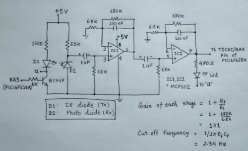 图 5: 光电式心率传感电路