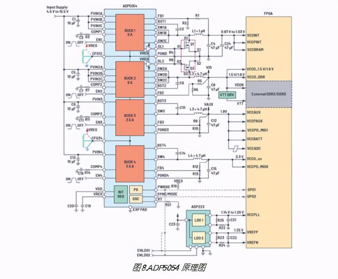 图7.适合FPGA应用的ADP5054单芯片多轨电源解决方案